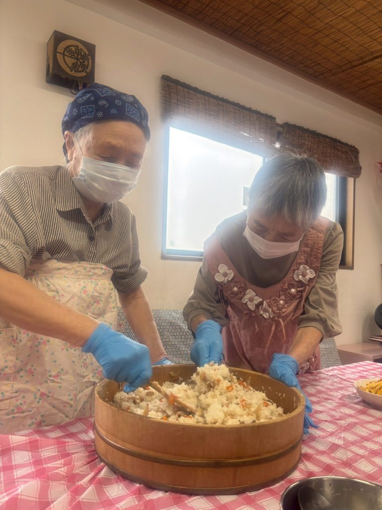 2025年10月16日 / 最終更新日 : 2025年11月12日 shoujakuan 日記 今日は皆様、大大大好きなちらし寿司! 今月の調理レクは、ちらし寿司です。 皆様、昔はよく作ったわぁ。と仰られる様に、とても手際が良かったです。 錦糸卵も、とっても上手に焼いて切って下さいましたー♪ ちらし寿司の具の味付けも、添える煮物も、『ちょっと薄いわー。うんうん。美味しい』 と味を1から整えて美味しく作ってくれました。 さすがお母様!! 皆様とっても美味しい美味しいとずっとお喋りされながら召し上がられて。 ペロリと完食されていました。