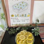 暑~い毎日。。。汗を流してさわやかに(^^♪ 今月は香りも爽快に『レモン風呂』です 柑橘の酸っぱい香りに誘われたのかマスクを外して 思わず パクッ💦